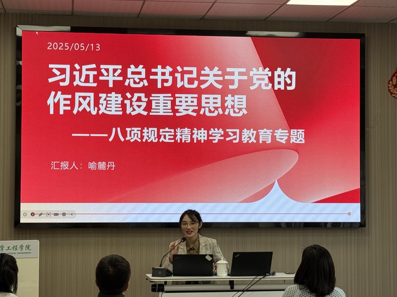 深入贯彻中央八项规定精神学习教育以来,365上市公司官网党委聚焦主题、持续丰富学习形式,通过二级中心组读书班、支部“三会一课”、教师思政理论学习、网站专栏等多种载体,落实开门教育,确保学习教育走深走实。5月13日,365上市公司官网党委特邀思政指导员、马克思主义学院喻麓丹老师送教上门,帮助学院进一步凝心聚力、干事创业,在推进高质量发展中展现新作为。