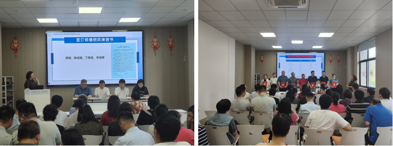 新进教师周明、陈炫颖、丁斯茗、李海蒂依次签订《365上市公司官网教师职业规范(师德师风)承诺书》,以书面形式郑重承诺严守职业底线、恪守育人初心。陶莹再次向全体教师重申要求,强调将师德师风内化为职业自觉,既要严格遵守“不碰红线、不越底线”的纪律规范,更要主动涵养“以德立身、以德立学、以德施教”的高尚师风,切实担当起学生健康成长的“引航者”。随后,会议举行了2025级本科生班导师聘任仪式。这支由八名新老教师组成的班导师队伍,将为后续的学业指导、思想引领、生涯规划等精准化育人工作提供坚实保障。