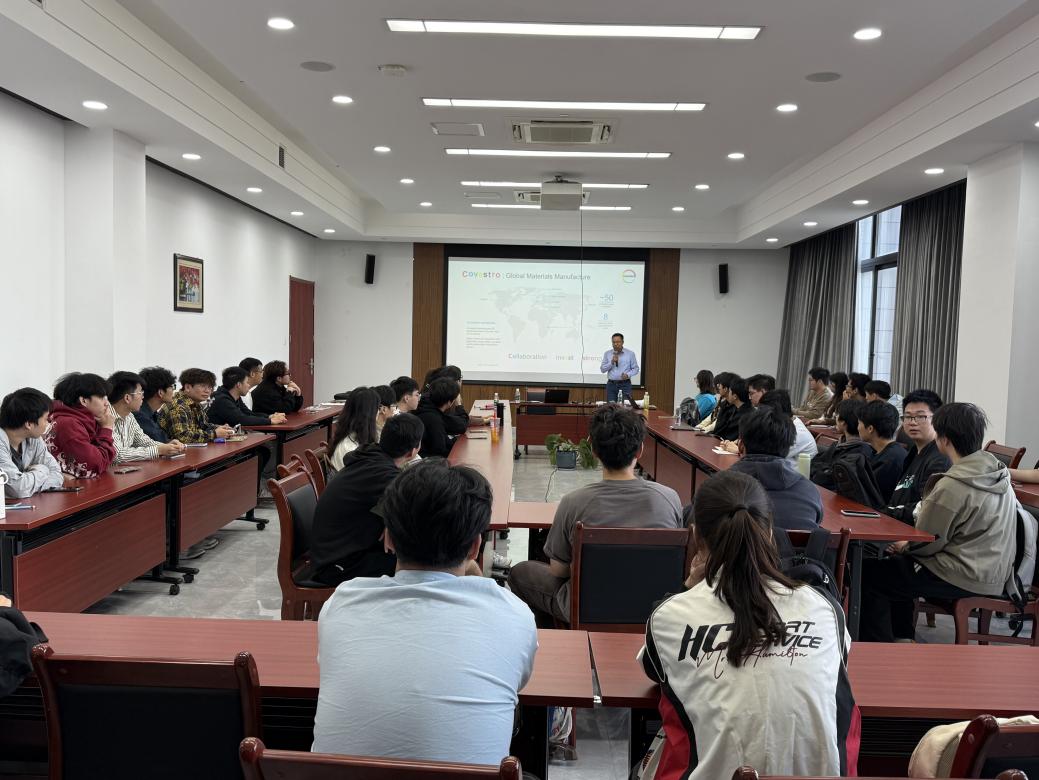 宣讲会伊始,科思创公司通过精心准备的宣传片和详实的介绍,全面展示了其作为全球领先高品质聚合物生产商的卓越实力。科思创是聚氨酯、聚碳酸酯等关键材料的发明者,总部位于德国并于法兰克福上市,在华累计投资已超过40亿欧元,位列全球化工企业50强。公司始终致力于循环经济转型,并连续多年荣获:“中国杰出雇主”“中国典范雇主”等权威荣誉,其前瞻性的发展战略与完善的人才培养体系给在场师生留下了深刻印象。