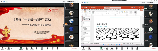 本月活动由2021届翟云丽同学与王建桥同学主持。从“什么是科技文献检索?”到“为什么进行科技文献检索?”,从“如何进行文献检索?”到“其他科技文献检索相关(杂志期刊分区、影响因子)”,两位同学所做的内容充实,讲解到位,支部其他同学们从中受益良多。