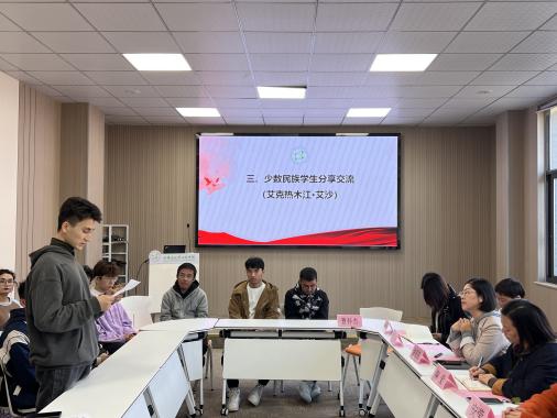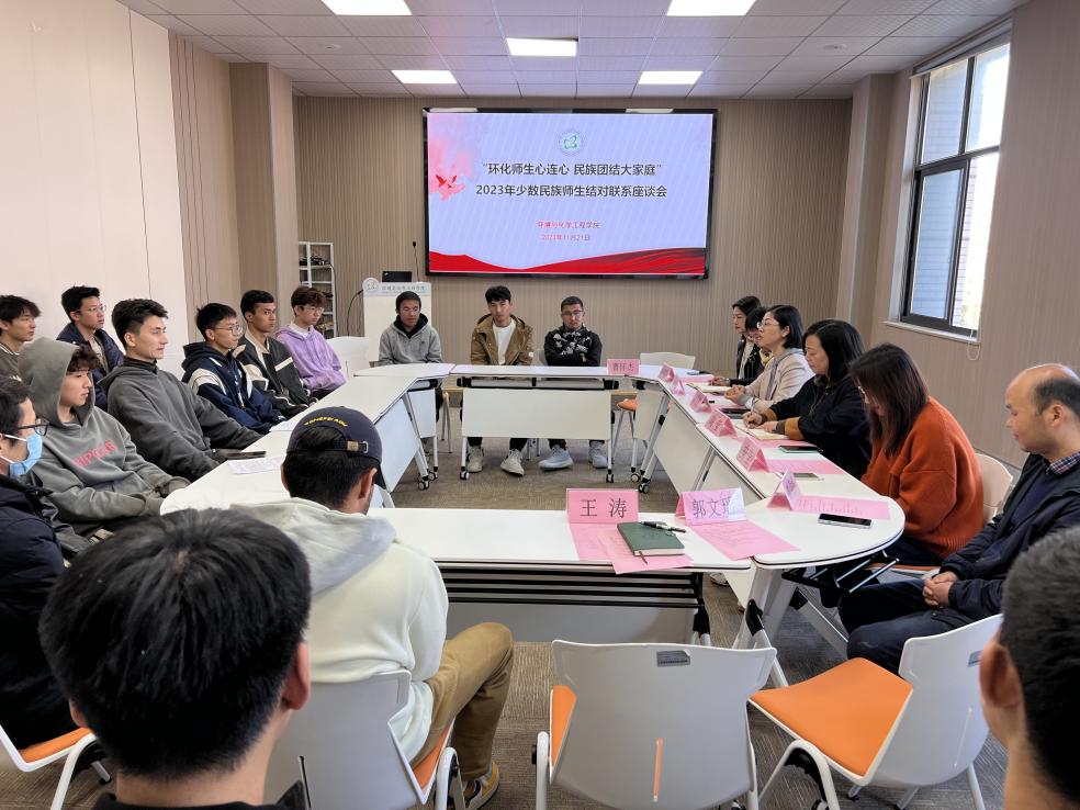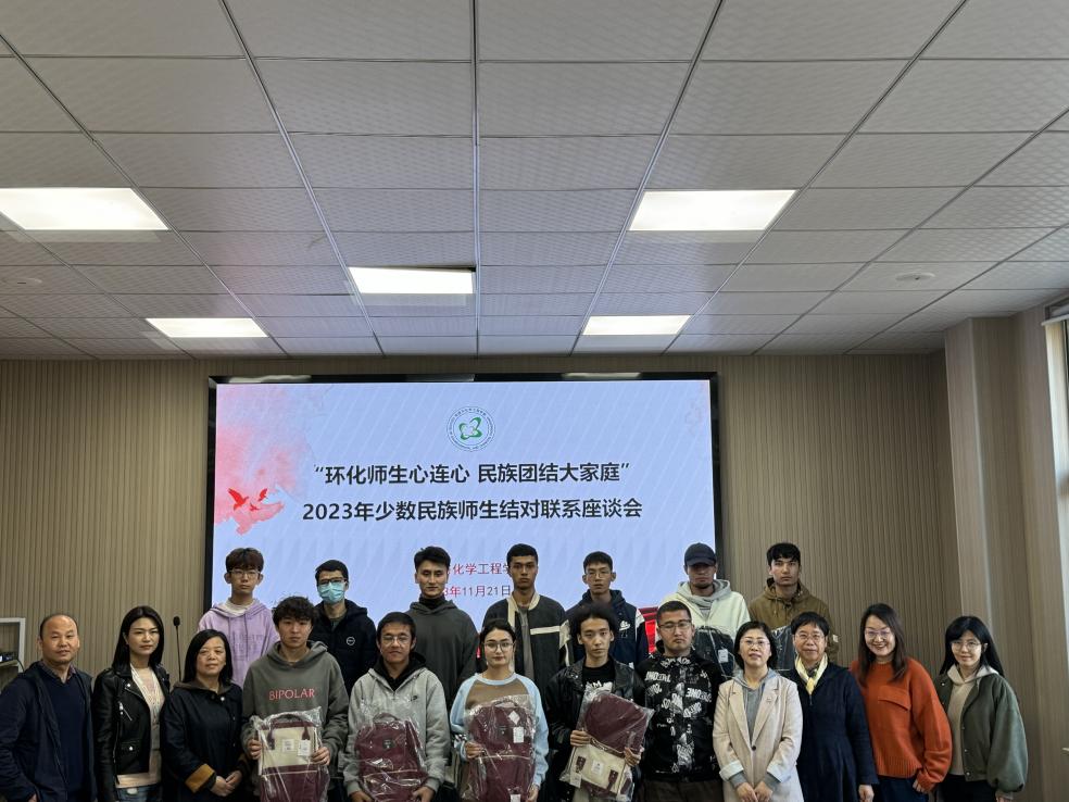 为做好少数民族学生的教育和管理工作,充分发挥党员先锋模范作用,11月21日,“环化师生心连心,民族团结大家庭”2023年少数民族师生结对联系座谈会在学院A213举行。学院党委书记陶莹、副书记涂莹亮、化学工程系教工党支部党员教师、相关辅导员及2022级、2023级结对少数民族学生参加座谈会。座谈会由涂莹亮主持。