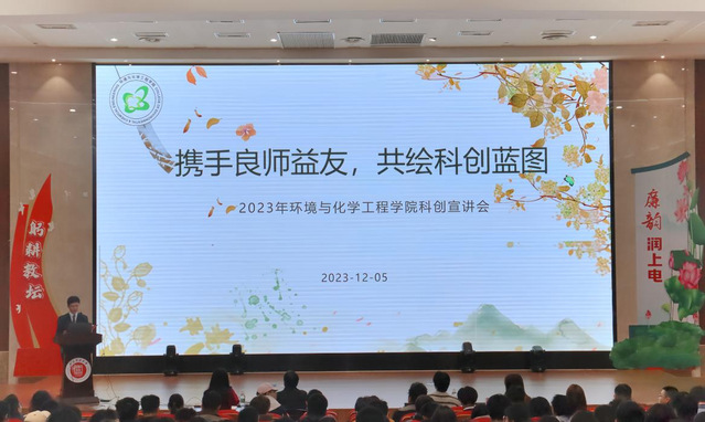 为培养学生创新意识、实践能力和科研素养,营造浓厚的科创氛围,推动学院创新创业工作的有序开展,12月5日下午,365官网举办2023年环保科技节之“携手良师益友 共绘科创蓝图”科创宣讲会。副院长时鹏辉、分团委书记张亦男、研究生代表郑超杰、本科生代表杨金诺出席本次宣讲会。365官网一年级、二年级本科生参与学习。