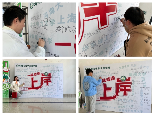 用“研途誓言墙”寄予期望。学院精心设计“研途誓言墙”,将全院考研学子的目标院校上“墙”展示,邀请全院考研学子通过文字、涂鸦等形式表达对考研的期望,同学们纷纷主动前往打卡,激励彼此,筑梦前行,“Things will work just fine!”、“让我们顶峰相见”、“关关难过关关过,前路漫漫亦灿烂”,这一句句期待的话语汇聚了大家对未来学术道路的憧憬以及对自身成长的期望,也让考研学子感受到学院的浓浓关爱与支持。