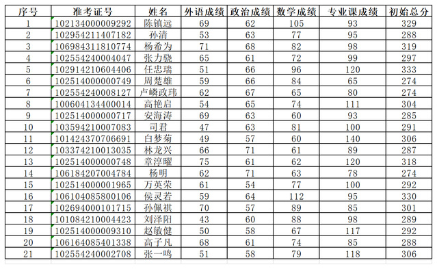 专业复试名单