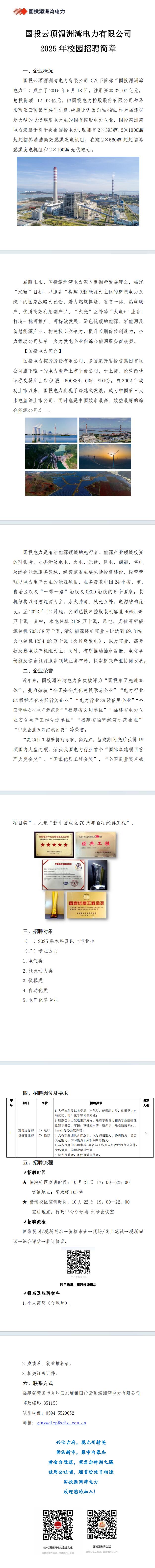 院2025届就业信息【27】——国投云顶湄洲湾电力有限公司