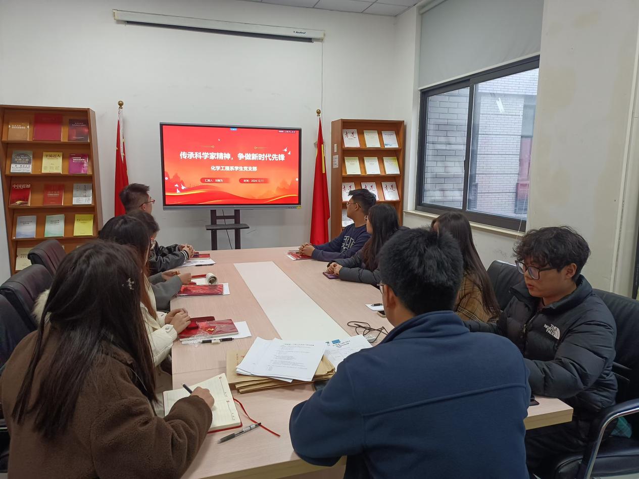 1211日下午,化学工程系学生党支部在A207会议室开展以“传承科学家精神,争做新时代先锋”为主题的组织生活。党支部书记王涛主持。