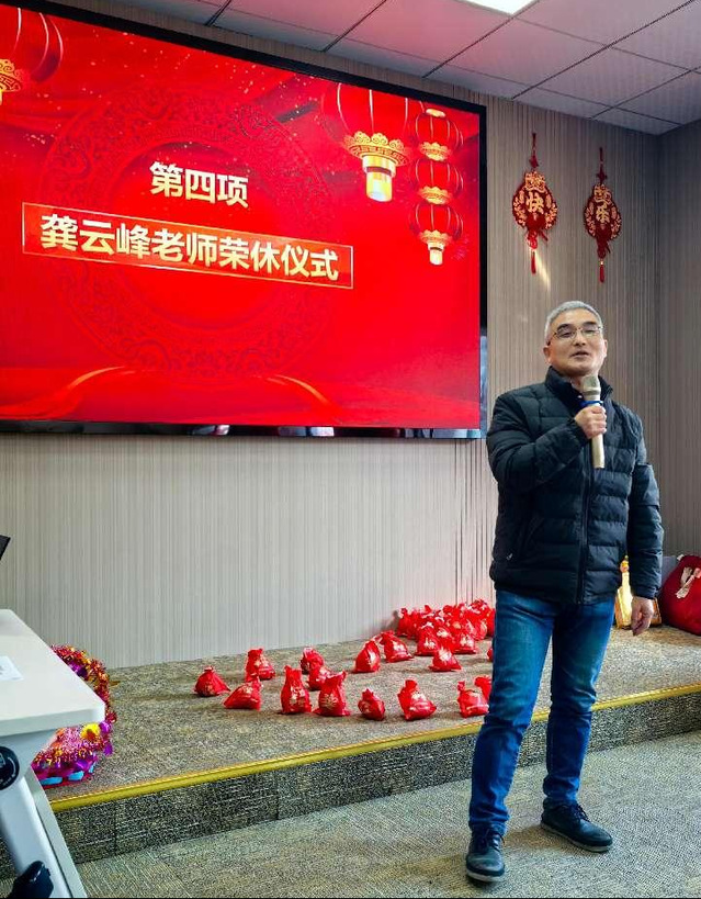 在退休教师荣休仪式上,龚云峰老师满怀感慨的回忆了自己在上电工作的三十七载,细数了一些自己与学校、学院共成长的闪光时刻。荣休之后,会将对学校的不舍转化为对学校事业的继续关注,祈愿学院蓬勃发展,老师们诸事顺遂。