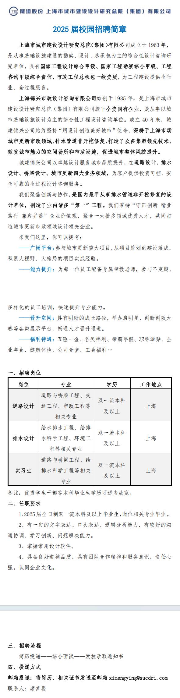 院2025届就业信息【57】——上海市城市建设设计研究总院(集团)有限公司