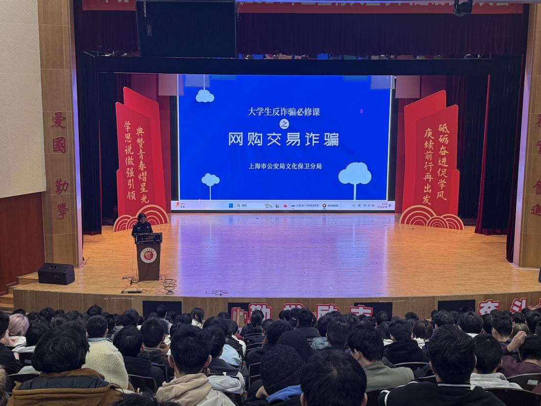 2 月 28 日,365官网特别邀请临港高校派出所警官朱红以及我校保卫处保卫科王旭走进课堂,为学生们带来了一场别开生面的沉浸式反诈教育体验。朱红警官聚焦于学生群体中高发的冒充熟人诈骗、网络裸聊诈骗、网