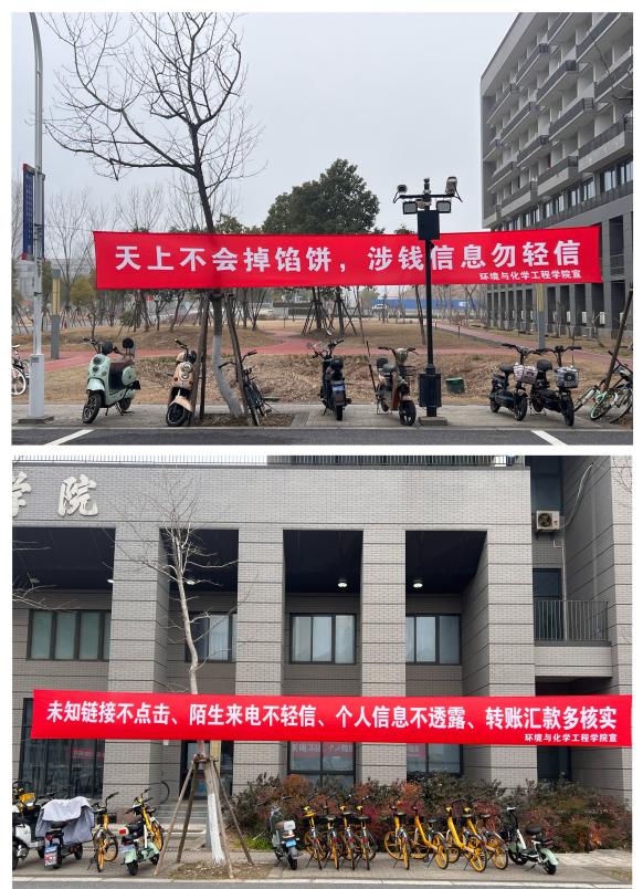 学院积极营造浓厚的反诈宣传氛围,力求做到“抬头可见、驻足即学”。在学院楼门前的主干道上,悬挂着醒目的反诈标语横幅,“未知链接不点击、陌生来电不轻信、个人信息不透露、转账汇款多核实” 等朗朗上口的提示语,时刻提醒着过往学生提高警惕。同时,学院创新性地在楼内楼梯台阶张贴 “防诈阶梯”警示地贴,诸如“信息核实再核实,骗子无机再可乘”“侥幸心理不可有,防诈意识不可无” 等标语,让学生在日常行走间潜移默化地接受反诈教育。此外,学院充分利用新媒体平台的传播优势,在微信公众号上连续推出《诈骗套路多 防诈有妙招》专题内容,各班级群也定期转发警方发布的预警信息,确保反诈宣传全方位、无死角,真正深入到学生的学习与生活之中。